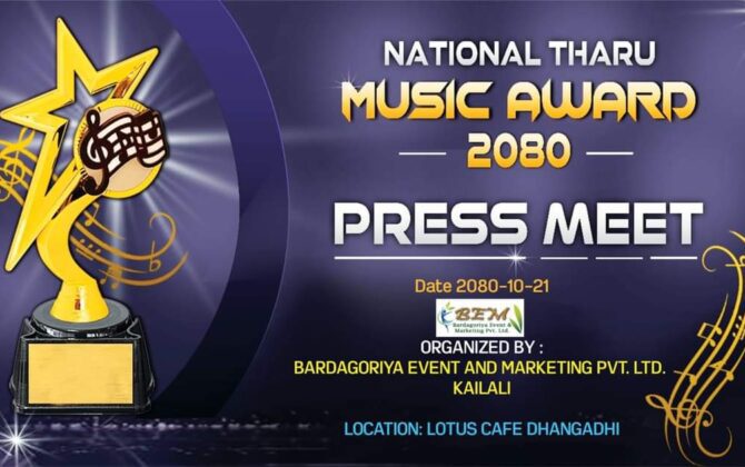 पुरा पढ्नुहोसधनगढी । नेपालमै पहिलोपटक कैलालीको धनगढीमा राष्ट्रिय थारु म्युजिक अवार्ड २०८० को आयोजना गरिएको छ । कैलालीको बर्दगोरिया गाउँपालिकामा रहेको बर्दगोरिया इभेण्ट एण्ड मार्केटिङ प्रालिको आयोजनामा अवार्ड हुने भएको हो । राष्ट्रिय थारु म्युजिक अवार्ड