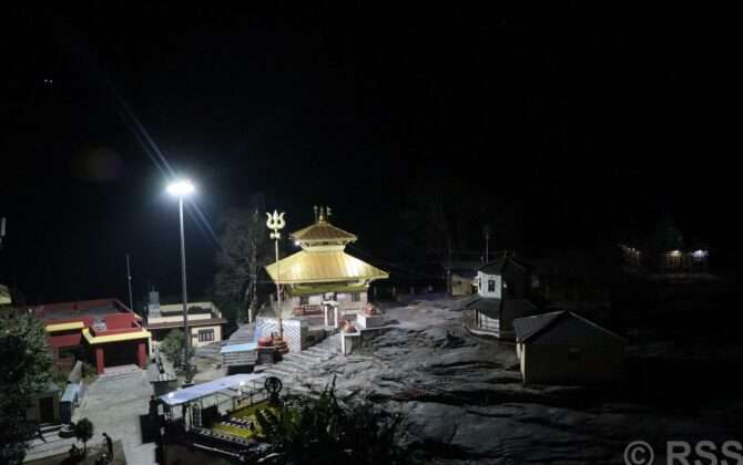 पुरा पढ्नुहोसम्याग्दी, भक्तजनले चढाएको भेटीमार्फत भएको आम्दानी परिचालन गरेर म्याग्दीको बेनी नगरपालिका–९ स्थित धार्मिकस्थल गलेश्वर मन्दिर परिसरलाई रातिको समयमा पनि उज्यालो बनाइएको छ । गलेश्वर क्षेत्र विकास कोषले ‘हाइ मस्ट लाइट’ जडान गरेर मन्दिर परिसर रातमा