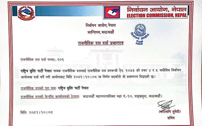 पुरा पढ्नुहोसराजेन्द्र महतो नेतृत्वमा नयाँ पार्टी दर्ता, चुनाव चिन्ह ग्याँस सिलिन्डर
