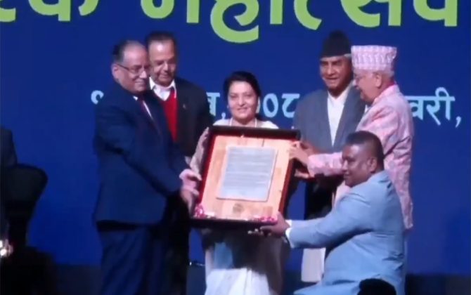 पूर्वराष्ट्रपति भण्डारीलाई एमालेद्वारा राष्ट्रिय गौरव पदकबाट सम्मान