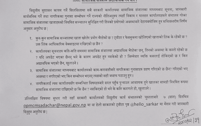 पुरा पढ्नुहोससरकारी कार्यालयका सामाजिक सञ्जाल अद्यावधिक गर्न निर्देशन