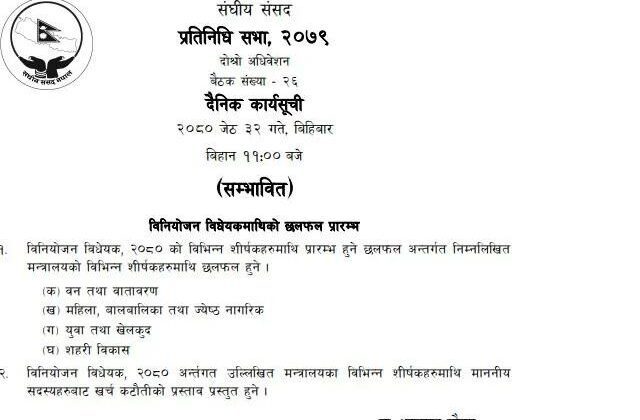 पुरा पढ्नुहोसप्रतिनिधिसभा बैठकमा बजेट माथी मन्त्रालयगत छलफल हुने
