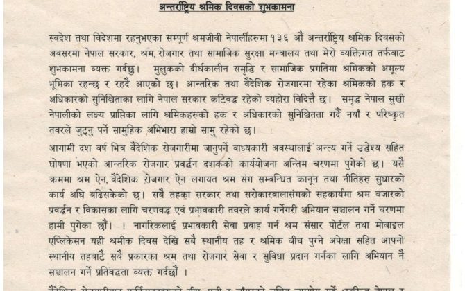 पुरा पढ्नुहोसश्रमिकको हक हितका लागि नेपाल सरकार प्रतिबद्द छ: श्रम मन्त्री