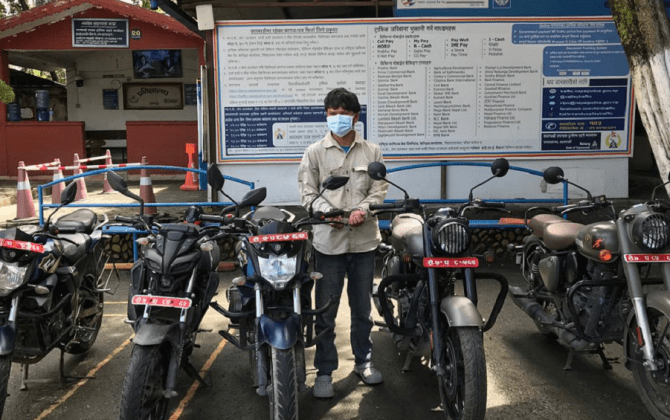 एकै नम्बरका पाँचवटा मोटरसाईकलसहित २ जना नियन्त्रणमा