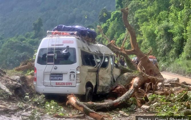धादिङमा गुडिरहेको माइक्रो बसमाथि रुख ढल्यो, ७ जना घाइते