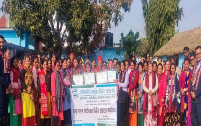 कैलाली । इन्फिनिटी लघुवित्त वित्तीय संस्था लिमिटेडले शाखा कार्यालय महेन्द्रनगर कञ्चनपुरमा समुह प्रमुख गोष्ठी तथा वित्तीय साक्षरता कार्यक्रम सञ्चालन गरेको छ । कार्यक्रम भिमदत्त नगरपालिका वडा नं. ३ स्थित होटल कलशको सभाहलमा ८३ जना