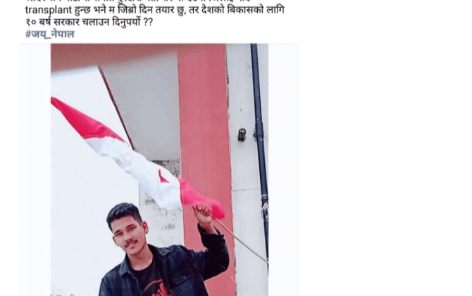 पुरा पढ्नुहोसबौनियाँ/कैलाली जिल्लाको मोहन्याल गाउँपालिकाका एक युवाले प्रधानमन्त्री शेरबहादुर देउवालाई जिब्रो दान गर्ने घोषणा गरेका छन् । सामाजिक सञ्जाल फेसबुकमार्फत आइतबार गाउँपालिकाको वडा नम्बर ७ का केशव माझीले ट्रान्सप्लान्ट गर्न मिल्ने भए प्रधानमन्त्री देउवालाई आफू