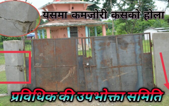 पुरा पढ्नुहोसबौनियाँ,कैलाली –बर्दगाेरिया गाउँपालिका वडा नम्बर १ कट्टिपुरमा जेष्ठ नागरिक मिलन केन्द्र पर्खाल र घेरबार निर्माण उपभोक्ता समिति द्धारा निर्माण भएको गेटकाे खम्बा भत्किए पछि उपभोक्ता समितिले पुनर्निर्माण गर्ने भएको छ । केही दिन परेको बर्शातका