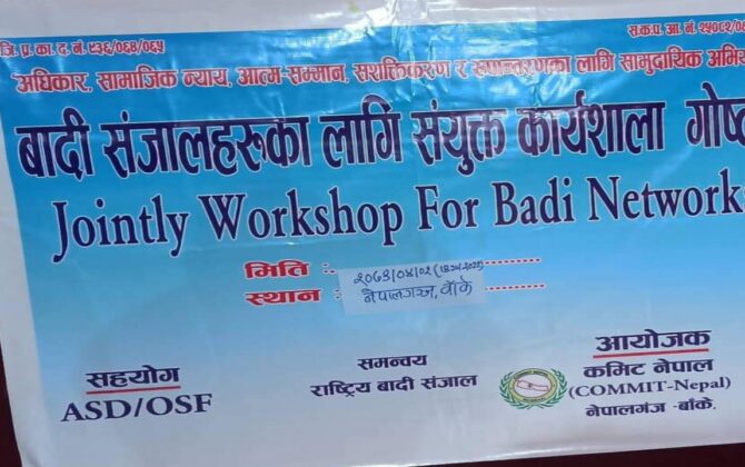 नेपालगञ्ज बाँके ✍️हिक्मत वादी-ASD/OSF को आर्थिक सहयोग कमिट नेपाल नेपालगन्जको आयोजना र राष्ट्रिय वादी संजालको समन्वयमा वादी संजालका लागि संयुक्त कार्यशाला गोष्ठी नेपालगञ्ज बाँकेको न्युरोड स्थित होटेल इन्द्रेणीमा सम्पन्न भएको छ । संयुक्त कार्यशाला गोष्ठीमा वादी