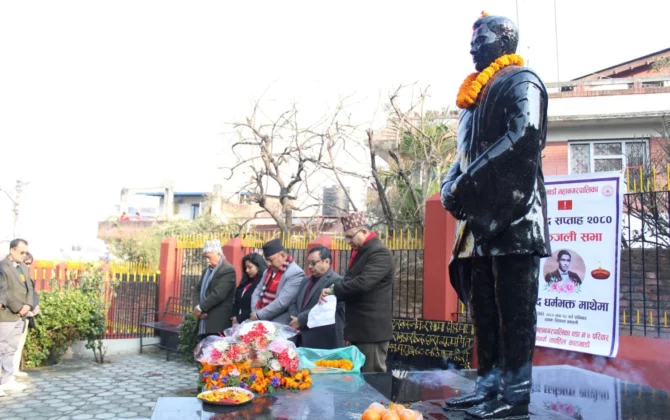 पुरा पढ्नुहोसकाठमाडौँ, सहिद धर्मभक्त माथेमाले सहादत प्राप्त गर्नुभएको स्थान काठमाडौँको सिफल उकालोमा आज स्मृति सभा सम्पन्न भएको छ ।सहिद सप्ताह आयोजक समितिको आयोजनामा प्रजातन्त्र प्राप्तिका लागि धर्मभक्त माथेमाले अमरत्व प्राप्त गर्नुभएको दिन र स्थानमा स्मृति