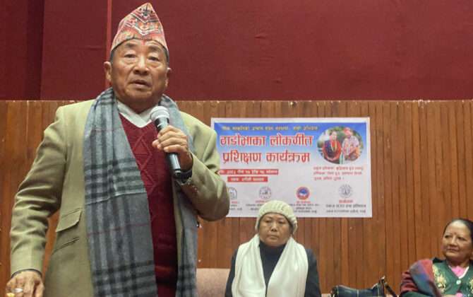 पुरा पढ्नुहोसडुम्रे (तनहुँ), तनहुँको व्यास नगरपालिका–१२ गोल्लाका हिमला आलेले लोपोन्मुख ठाडोभाकाको संरक्षणका लागि प्रशिक्षण नै लियो । युट्युबलगायतका सामाजिक सञ्जालमा हेरेर गाउने प्रयास गरे पनि सफल नभएपछि उहाँले अहिले प्रशिक्षण नै लिनुभयो । “पहिले लोकभाकाको लय,