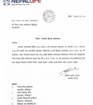नेपाल लाइफ इन्स्याेरेन्सले लाभांश वितरण नगर्ने