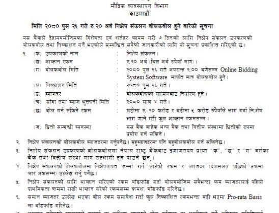 काठमाडौ । नेपाल राष्ट्र बैंकले बजारमा अधिक तरलताको व्यवस्थापन गर्न निक्षेप संकलन उपकरण जारी गर्ने भएको छ ।बैंकले २० अर्ब रुपैयाँको बैंक तथा वित्तीय संस्थाहरुको तरलता खिच्न निक्षेप संकलन उपकरण जारी गर्ने भएको छ