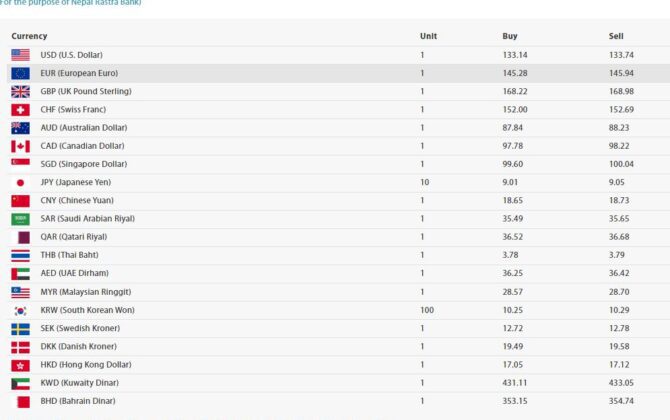 आजको बिदेशी मुद्राको बिनिमय दर, डलर र युरोको भाउ सामान्य घटयो