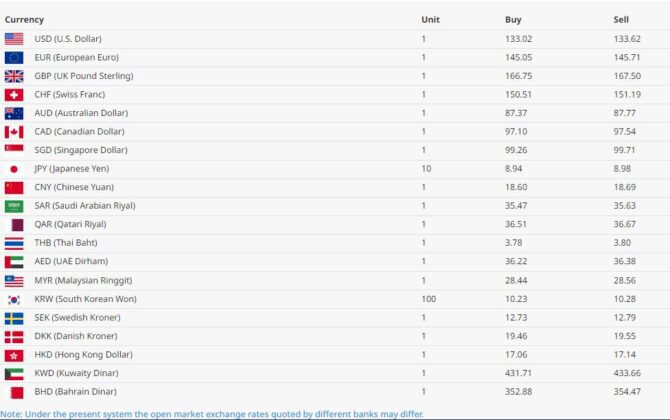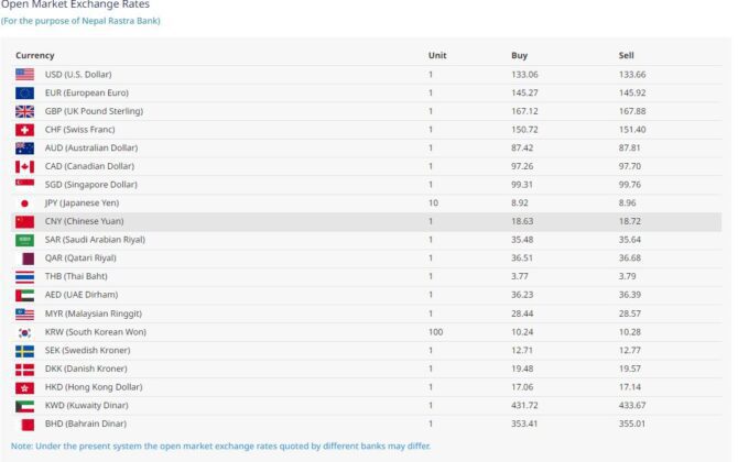 पुरा पढ्नुहोसकाठमाडौं। नेपाल राष्ट्र बैंकले आजका लागि बिदेशी मुद्राको बिनिमय दर सार्बजिनक गरेको छ । जस अनुसार भारतीय रूपैयाँ एक सयको खरिद दर १६० रूपैयाँ रहेको छ भने बिक्री दर १६० रूपैयाँ १५ पैसा कायम गरिएको
