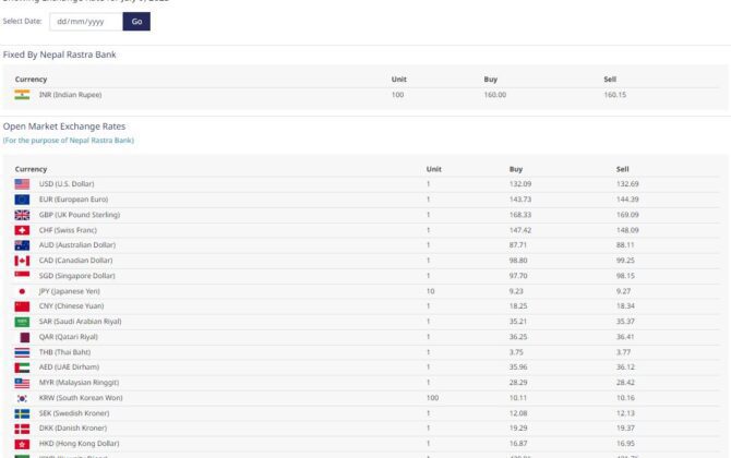 बिदेशी मुद्राकाे बिनिमय दर, कति पुग्यो त डलरको मूल्य ?