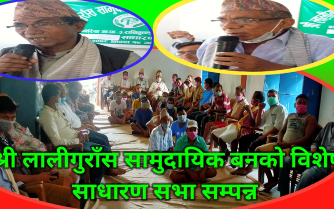 पुरा पढ्नुहोसबौनियाँ/कैलाली जिल्लाको बर्दगोरिया गाउपालिका वडा नं ३ रानिकुण्डामा अवस्थित श्री लालीगुराँस सामुदायिक बन उपभोक्ता समुहको विशेष साधारण सभा मगंलबार सम्पन्न भएको छ। हेर्नु होस् यो भिडियो सामुदायिक बन उपभोक्ता समुहका अध्यक्ष भीम बहादुर कुँवर को सभापतित्वमा