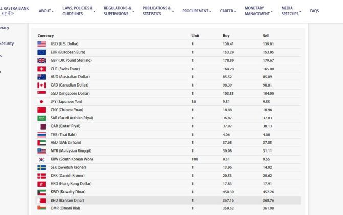 यस्तो रहेको छ आजको विदेशी मुद्रको विनिमयदर, कुन मुद्रा कतिमा हुँदैछ कारोबार ?