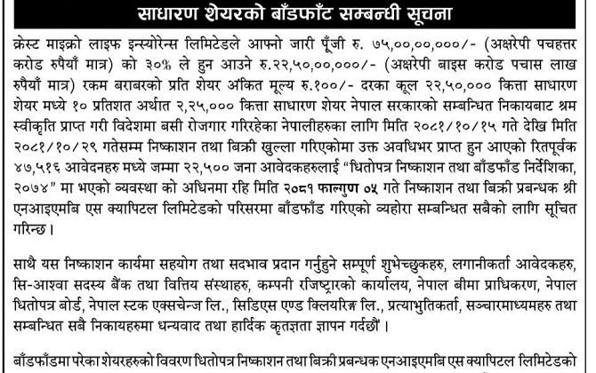पुरा पढ्नुहोसक्रेष्ट माइक्रो लाइफ इन्सुरेन्सको आइपीओ बाँडफाँट