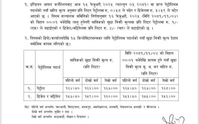 पुरा पढ्नुहोसआयल निगम: पेट्रोलको मूल्य बढ्यो, डिजेल र मट्टितेलको घट्यो