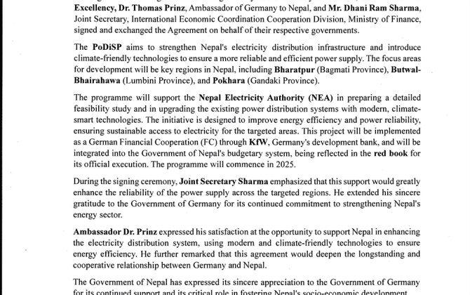 पुरा पढ्नुहोसविद्युत वितरण सुदृढीकरणका लागि जर्मनीले दियो १० मिलियन युरो अनुदान