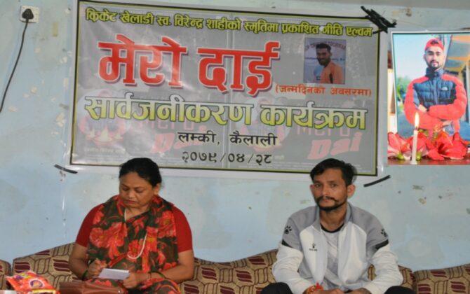 पुरा पढ्नुहोसलम्की,कैलाली- क्रिकेट खेलाडी स्वर्गीय विरेन्द्र शाहीकाे स्मृतिमा प्रकाशित गीति एल्बम मेरो दाई सार्वजनिकरण कार्यक्रम शनिबार लम्किमा सम्पन्न भएको छ ।२०५१ साल साउन १८ गते लम्किचुहा नगरपालिका वडा नम्बर १ भुरुवामा बुबा माेति बहादुर शाही