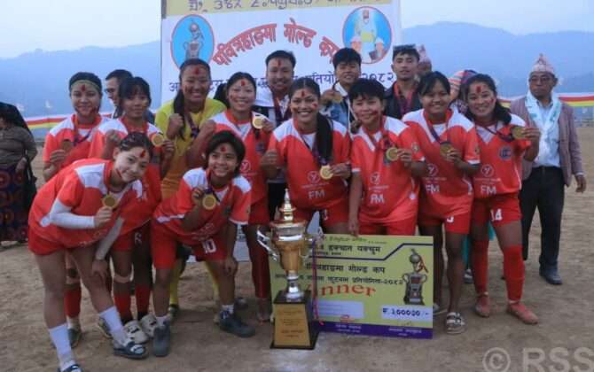 पुरा पढ्नुहोसफिक्कल (इलाम), इलामको माङसेबुङ गाउँपालिकामा सञ्चालित १६औँ संस्करणको पवित्रहाङमा गोल्डकप महिला फुटबल प्रतियोगिताको उपाधि दारिम्बा फुटबल क्लब पाँचथरले जितेको छ ।शनिबार माङसेबुङ गाउँपालिका–५ स्थित प्रस्तावित आत्मानन्द रङ्गशालामा भएको फाइनल खेलमा डिफेन्डिङ च्याम्पियन जनता सेभेन