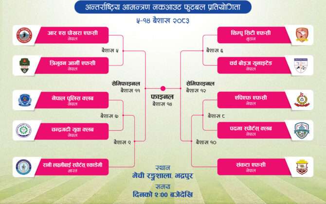 पुरा पढ्नुहोसझापा, आगामी वैशाख ५ गतेदेखि हुने चन्द्रगढी महिला गोल्डकपको खेलतालिका सार्वजनिक गरिएको छ ।आयोजक चन्द्रगढी युवा क्लबले आज खेलतालिका सार्वजनिक गरेको हो । यही २०८३ वैशाख ५ देखि १४ गतेसम्म हुने प्रतियोगिताको विजेताले नगद