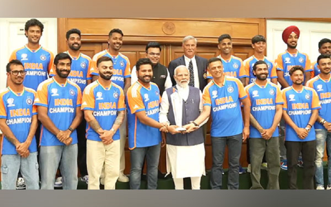 काठमाडौँ । टी– २० विश्वकपको उपाधि जितेको भारतीय क्रिकेट टोलीले प्रधानमन्त्री नरेन्द्र मोदीसँग भेट गरेको छ ।वेस्ट इन्डिजको बारबाडोसबाट बिहीबार बिहान दिल्ली आइपुगेको भारतीय क्रिकेट टिमलाई प्रधानमन्त्री मोदीले आफ्नै निवासमा लन्च भेट गरेको भारतीय