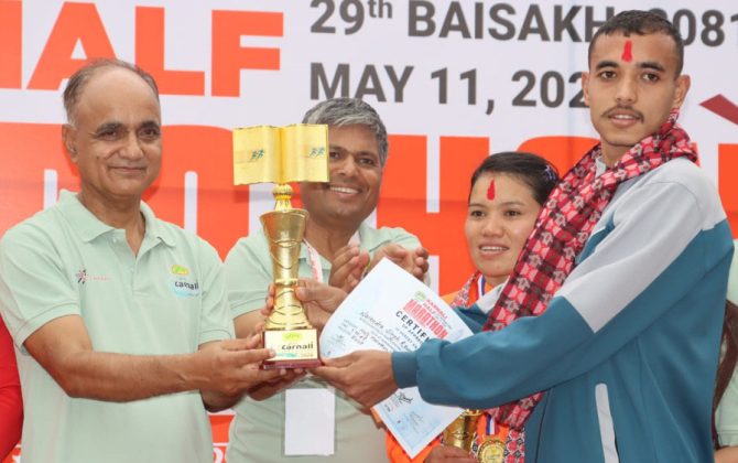 पुरा पढ्नुहोससुर्खेत । सुर्खेतको वीरेन्द्रनगरमा भएको प्रथम कर्णाली हाफ म्याराथन प्रतियोगिताको पुरुष तर्फको उपाधि नेपाली सेनाले लिन सफल भएको छ । कर्णाली प्रदेश खेलकुद विकास परिषद्सँगको आर्थिक सहयोग साझेदारीमा भएको प्रथम कर्णाली हाफ म्याराथन प्रतियोगिताको