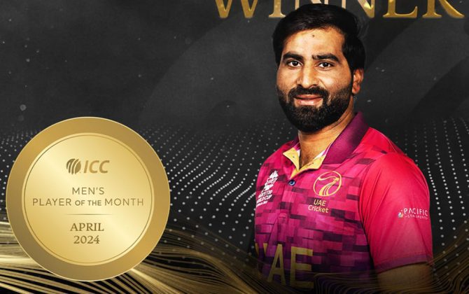 काठमाडौँ । युएईका कप्तान मुहमद वासीम आइसीसीको अप्रिल महिनाको ‘प्लेयर अफ द मन्थ’ बनेका छन् ।वासीमले पाकिस्तानका शाहीन शाह अफ्रिदी र नामिबियाका गेरहार्ड इरासमसलाई पछि पार्दै अपरिम महिनाको उत्कृष्ट खेलाडीको उपाधि जितेका हुन् ।वासीम