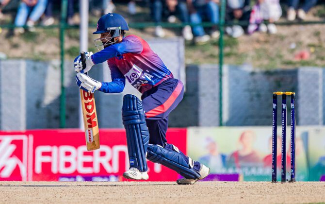 आयरल्याण्ड वोल्भ्सविरुद्ध टस हारेर नेपाल ए ले पहिला ब्याटिंग गर्दै