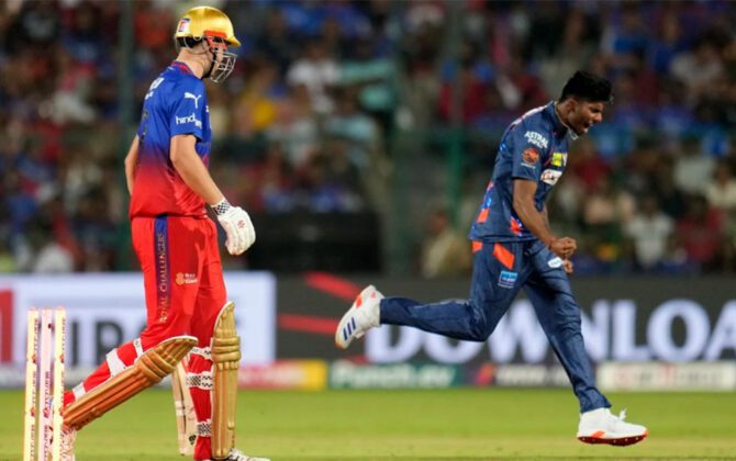लखनउले रोयल च्यालेन्जर्स बैंगलुरुलाई २८ रनले हरायो