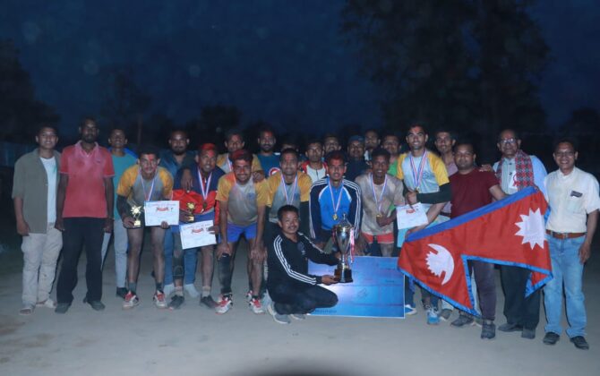 पुरा पढ्नुहोसकैलाली । कैलालीको बर्दगोरियामा जारी छैटौं संस्करणको राष्ट्रव्यापी खुल्ला भलिबल प्रतियोगिताको उपाधि आयोजक साईनिङ्ग स्टार युवा क्लबले जितेको छ । बर्दगोरिया–३ स्थित रामजानकी मन्दिर खेलमैदानमा मंगलबार भएको फाइनलमा खेलमा उत्कृष्ट प्रदर्शन गर्दै आयोजक साईनिङ्ग स्टार ‘ए’
