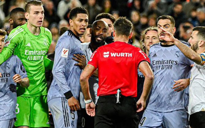 काठमाडौं । स्पेनिस ला लिगा अन्तर्गत रेफ्रीको विवादस्पद निर्णयपछि रियल म्याड्रिड बराबरीमा रोकिएको छ । गएराती सम्पन्न रियल म्याड्रिड र भलेन्सियाबीचको खेल २-२ गोलको बराबरीमा रोकिएको हो ।   खेलको ९९औ मिनेटमा रियल म्याड्रिडका जुडे बेलिंगघमले गोल