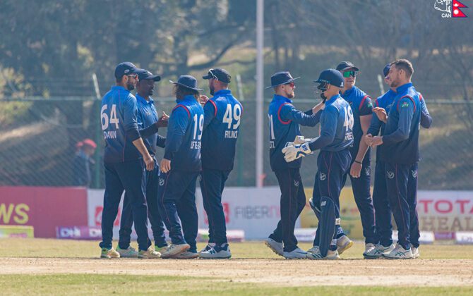 पुरा पढ्नुहोसकाठमाडौँ । नेपालले नामिबियाविरुद्ध खराब ब्याटिङग गरेको छ । आईसीसी क्रिकेट विश्वकप लिग- २ अन्तर्गतको पहिलो खेलमा टस हारेर पहिला ब्याटिंग गरेको नेपाल ४१.१ ओभरमा १३२ रन बनाएर अलआउट भएको छ । नेपालका भीम सार्कीले