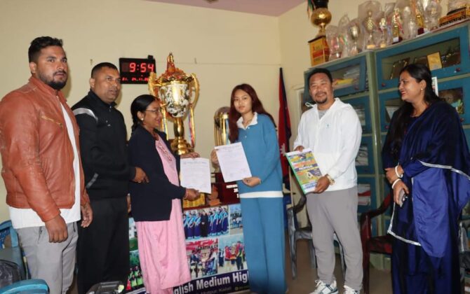कैलाली । कैलालीको बर्दगोरियामा आयोजना हुने प्रथम मुख्यमन्त्री पालिका स्तरिय कैलाली जिल्ला व्यापी फुटबल प्रतियोगितको लागी लम्कीमा रहेको गुरुकुल अंग्रेजी माद्यामिक विद्यालयले प्रथम पुरस्कारको प्रायोजन गरेको छ ।शुक्रवार विद्यालयका अध्यक्ष माधव थापा र बर्दगोरिया