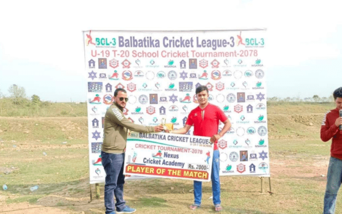 पुरा पढ्नुहोसबौनियाँ/बर्दगोरियामा विद्यालय स्तरको यू–१९ क्रिकेट प्रतियोगिता, बालबाटिका क्रिकेट लिग–३ मंगलबारदेखि सुरु भएको छ । बालबाटिका बिद्या मन्दिरको आयोजनामा सञ्चालन भएको प्रतियोगिता अन्तरगत उद्घाटन खेलमा कैलालीको गुरुकुल एकेडेमी विजयी भएको छ । कर्णाली मा बि