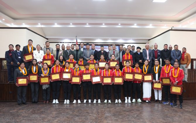 प्रधानमन्त्रीद्वारा अन्तराष्ट्रिय पदक बिजेता खेलाडीलाई पुरस्कार प्रदान