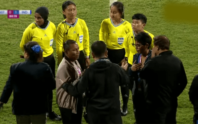 रेफ्रीले नेपालको गोल दिन अस्वीकार गरेपछि तनाव, खेल अवरुद्ध