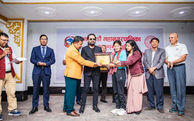 महिला भलिबल टिमलाई काठमाडौँ महानगरको जनही एक लाख नगदसहित सम्मान