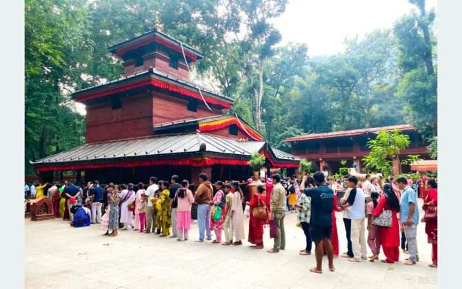पुरा पढ्नुहोसगण्डकी, बडादसैँको सप्तमीका दिन सोमबार बागलुङ नगरपालिका-१ स्थित प्रसिद्ध शक्तिपीठ कालिका भगवती मन्दिरमा पूजाअर्चनाका लागि लामबद्ध भक्तजन। बडादसैँको नवरात्रभर यहाँ विशेष पूजा हुने गर्छ । तस्बिर : रामबहादुर थापा/रासस