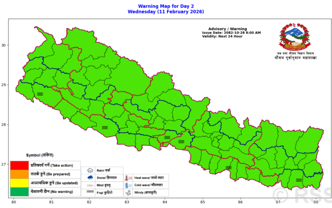 पुरा पढ्नुहोसकाठमाडौँ, हाल देशमा पश्चिमी वायुको आंशिक प्रभाव रहेको जनाउँदै जल तथा मौसम पूर्वानुमान महाशाखाले तराईका धेरै स्थानका साथै उपत्यकाहरूमा हुस्सु लागेको बताएको छ । साथै हिमाली तथा उच्च पहाडी भागमा आंशिक बदली भएको छ