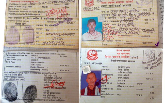महाेत्तरी । नागरिकतामा मान्छेहरुको नाम मिल्न सक्छ, जन्ममिति पनि मिल्न सक्ला तर दुइवटामा नागरिकता नम्बर नै मिलेको महोत्तरीवाट अनौठो घटना बाहिरिएको छ । महोत्तरीस्थित बर्दिवास-२ मा पूर्ण भूमिहिनको तथ्यांक संकलन गर्ने क्रममा फरक-फरक दुइ