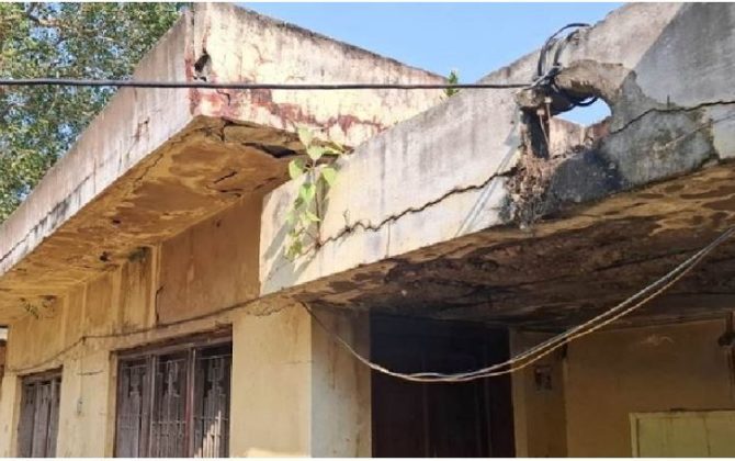 विश्रामपुरस्थित स्वास्थ्य चौकीमा कार्यरत स्वास्थ्यकर्मी जीर्ण भवनबाट सेवा दिन बाध्यचौकीमा