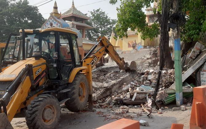 पुरा पढ्नुहोसवीरगन्ज । आज शनिबार वीरगन्ज महानगरपालिकाले वीरगन्जको गीता मन्दिर परिसरका अनधिकृत रूपमा निर्माण गरिएका सटर भत्काएको छ । अनधिकृत रूपमा कब्जा गरेर मन्दिर परिसरमा निर्माण गरिएका आधा दर्जनभन्दा धेरै सटरलाई महानगरले आज (शनिबार )
