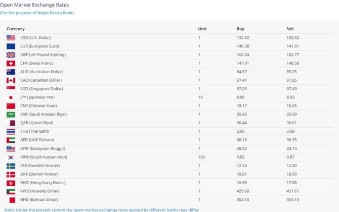पुरा पढ्नुहोसकाठमाडौं। नेपाल राष्ट्र बैंकले आजका लागि विदेशी मुद्राको विनिमय दर निर्धारण गरेको छ ।जसअनुसार भारतीय रूपैयाँ एक सयको खरिद दर १६० रूपैयाँ रहेको छ भने बिक्री दर १६० रूपैयाँ १५ पैसा कायम गरिएको छ