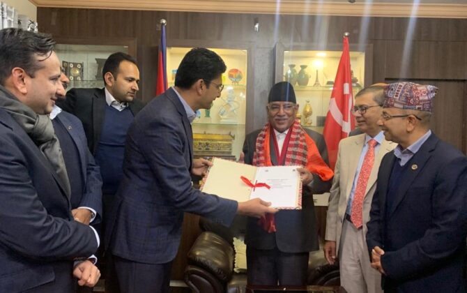 पुरा पढ्नुहोसनेपाल राष्ट्रिय व्यवसायी महासङ्घले नयाँ सरकारबाट देशको सङ्कटग्रस्त अर्थतन्त्र सुधार हुने विश्वास लिएको छ । महासङ्घले सोमबार मुलुकको ४४ औँ प्रधानमन्त्रीको शपथ ग्रहण लिनुभएका नेकपा (माओवादी केन्द्र) का अध्यक्ष पुष्पकमल दाहाल ‘प्रचण्ड’लाई आज विज्ञप्तिमार्फत