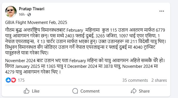 पुरा पढ्नुहोसगौतम बुद्ध अन्तर्राष्ट्रिय विमानस्थलमा फेब्रुअरीमा हालसम्मकै धेरै यात्रु आवागमन