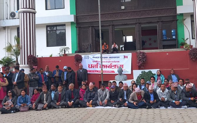 आन्दोलनरत शिक्षकहरुले आज एमालेको केन्द्रीय कार्यालयमा धर्ना दिदै